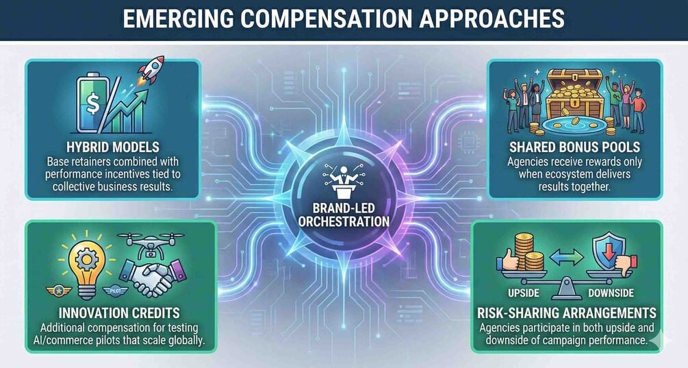 Forrester predicts that nearly one-third of automated jobs at US agencies will transition to GenAI over the next five years, while the creator economy is projected to become a $500 billion business by 2030. These forces are fundamentally altering agency value propositions and requiring new coordination frameworks that balance technological efficiency with human creativity.